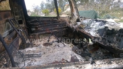 Εκεί φόρτωσαν το πλαστικό βυτίο που βρήκαν (οπως βλέπετε και στις φωτογραφίες) και προσπάθησαν να κλέψουν το λάδι. Η προσπάθεια τους δεν πέτυχε και έτσι έφυγαν ενώ το φορτηγό βρέθηκε καμένο σε χωράφι ανάμεσα στο Μεσοχωριό και τα Καστελλιανά. Προανάκριση διενεργεί το Αστυνομικό τμήμα Πύργου