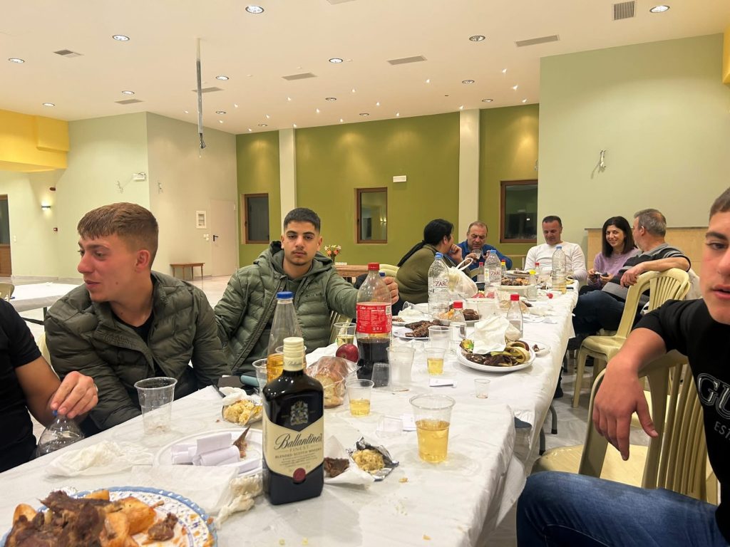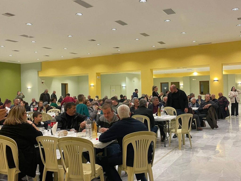Προσφέρθηκε πλούσιο γεύμα στους παρευρισκόμενους και παράλληλα ψυχαγωγία με ανιματέρ στα παιδιά.