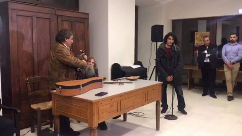 Η παρουσίαση της έκθεσης πλαισιώθηκε με μουσική όπως ήταν φυσικό. Ο Ψαραντώνης αυτοσχεδίασε με το σιωπηλό κοινό να τον απολαμβάνει ενώ με πολύ συγκίνηση άκουσαν όλοι την ιστορία του Σαμήρ τραγουδισμένη από τον ίδιο με ιδιαίτερη χροιά μελοποιημένη από τον Λουδοβίκο των Ανωγειων.