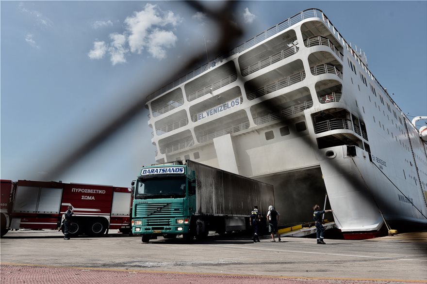 Ολοένα και πιο διαχειρίσιμη γίνεται η κατάσταση στο γκαράζ του πλοίου «Ελευθέριος Βενιζέλος», όπου ξέσπασε πυρκαγιά τα ξημερώματα της Τετάρτης. Η φωτιά έχει περιοριστεί αρκετά, ενώ ο καπνός είναι αισθητά λιγότερος σε σχέση με τις προηγούμενες ημέρες, ενώ βγήκε και το πρώτο ολοσχερώς κατεστραμμένο φορτηγό.
