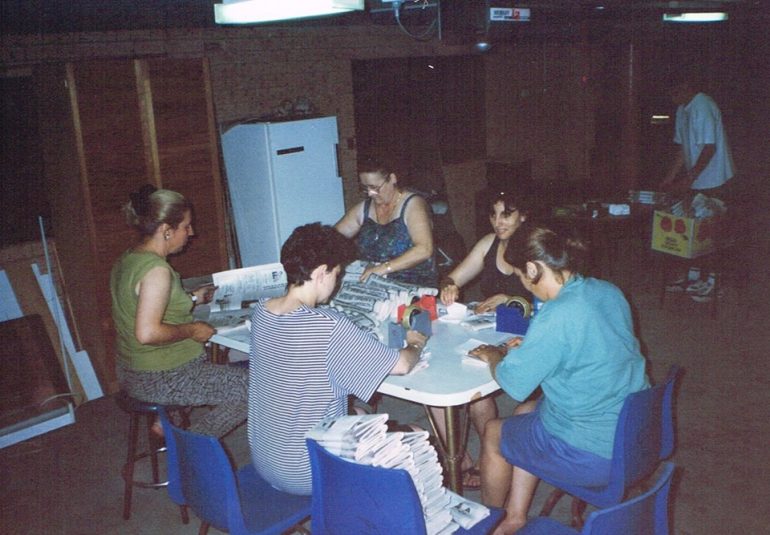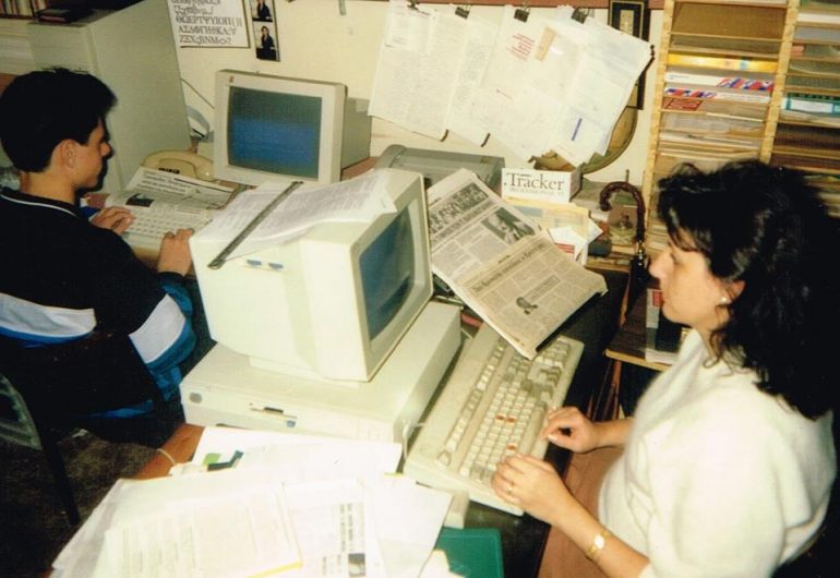 Επί το έργο. Σε υπολογιστή της εποχής γράφανε τα κείμενα τα εκτυπώνανε και στη συνέχεια γινόταν η σελιδοποίηση και ακολουθούσε ο δρόμος για το τυπογραφείο