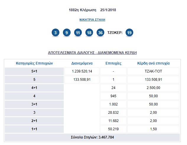 Μπορεί να μην έγινε εκατομμυριούχος για έναν αριθμό, ωστόσο, λογικά με τις 133 χιλιάδες που κέρδισε, δεν πρέπει να νοιώθει καθόλου δυσαρεστημένος.