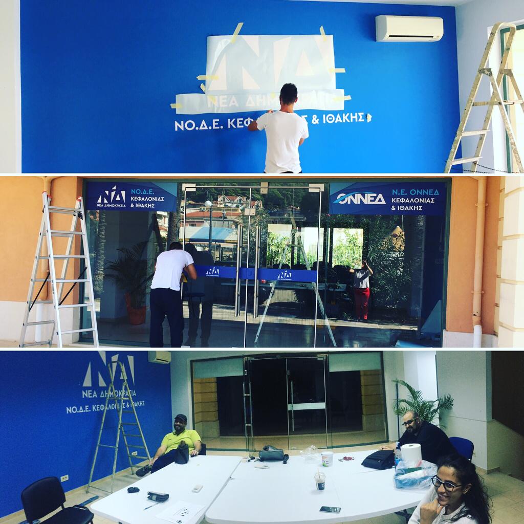 Στο πλαίσιο αυτό τα δραστήρια νέα στελέχη της ΝΟΔΕ Κεφαλονιάς θέλοντας ν’ αποτυπώσουν τον αέρα ανανέωσης που φυσά στη ΝΔ, ενόψει και της επίσκεψης του Κ. Μητσοτάκη το Σάββατο 20 Οκτωβρίου, σήκωσαν τα μανίκια και άλλαξαν τη εικόνα των γραφείων της οργάνωσης όπου κυριαρχεί το νέο σήμα της Παράταξης.