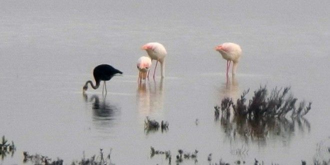 Την εμφάνισή του στην Αλυκή Ακρωτηρίου έκανε σήμερα ένα σπάνιο μαύρο φλαμίνγκο, το οποίο θεωρείται μοναδικό στο είδος του (Φωτογραφία-ντοκουμέντο)