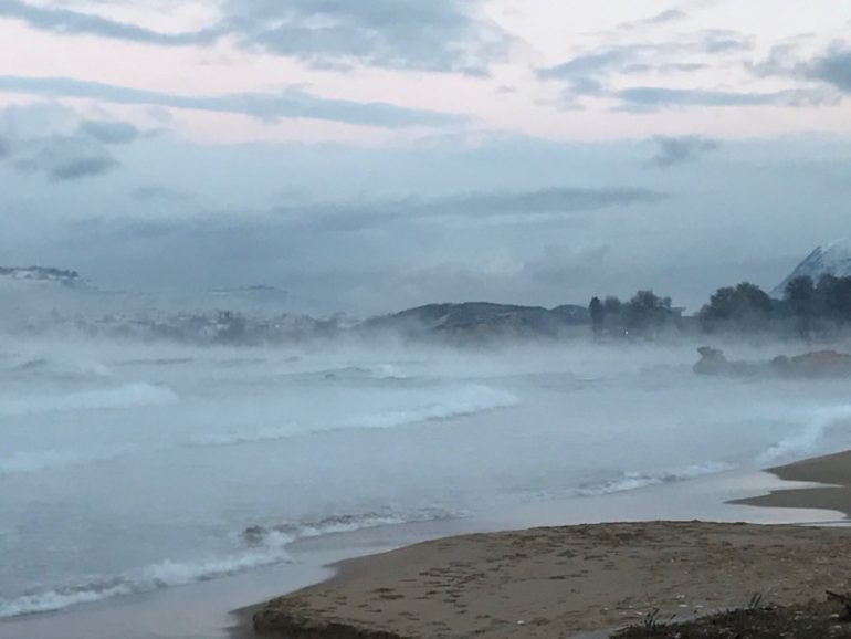 Ένα ονειρικό τοπίο, βγαλμένο λες και από παραμύθια αντίκρισαν σήμερα όσοι τόλμησαν να αψηφήσουν τον χιονιά και να πάνε σε παραλιακές περιοχές των Χανίων