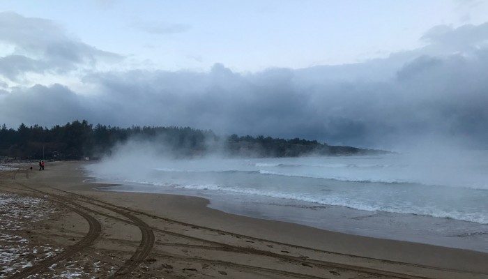 Όπως βλέπετε και στις φωτογραφίες από την παραλία στην Χρυσή Ακτή , μια περίεργη ομίχλη αναδύεται από την θάλασσα.