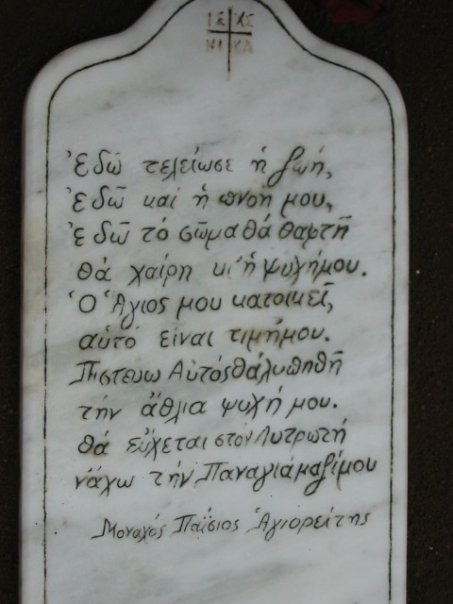 “Στις 12 Ιουλίου (νέο ημερολόγιο) του 1994, στις 11:30 τη νύχτα, την ησυχία τάραξε μια δυνατή βροντή! Κατόπιν με συνεχείς αστραπές φωτιζόταν όλο το Άγιον Όρος. Το απόγευμα έγινε γνωστό ότι ο Γέροντας είχε περάσει στην αιωνιότητα.”