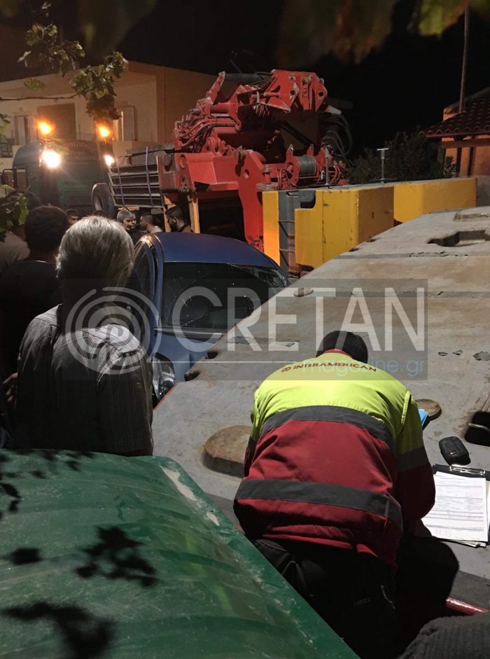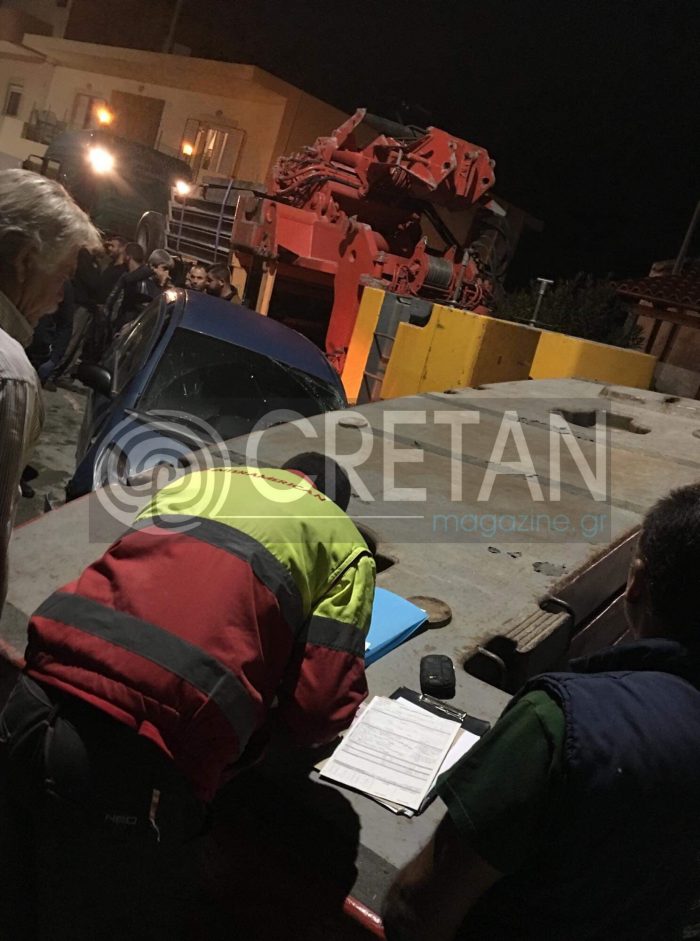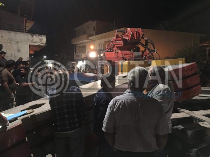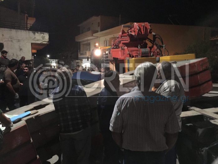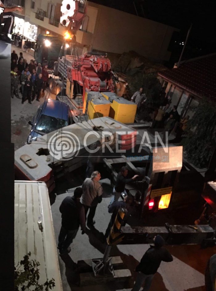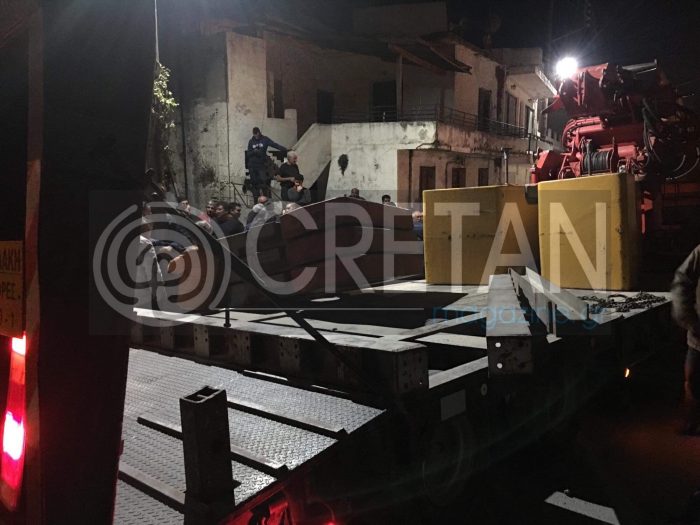 Στο σημείο βρέθηκε η Αστυνομία με την Τροχαία Ηρακλείου, όπου με την βοήθεια γερανού απομάκρυναν το φορτίο της νταλίκας.