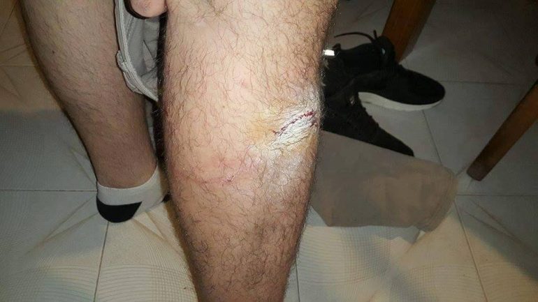 Το Σάββατο, 24-09-2016 κι ώρα περί την μία τα μεσάνυχτα, διέσχιζα πεζός την πλατεία Τάλως στην Παλιά Πόλη των Χανίων, στην ευρύτερη περιοχή της οποίας, είχα σταθμεύσει το αυτοκίνητο μου. Την ώρα εκείνη στην πλατεία βρίσκονταν πέντε περίπου αδέσποτα κι ιδιαιτέρως ανήσυχα σκυλιά. Σε ανύποπτο χρόνο και χωρίς προηγούμενη όχληση ή πρόκληση προς αυτά, ένας σκύλος μεσαίου μεγέθους και χρώματος γκρι προς άσπρο, αφού με πλησίασε επιθετικά, με δάγκωσε, για περίπου 15 δευτερόλεπτα, προκαλώντας μου, πέραν των υλικών ζημιών, βαθύ τραύμα κι αμυχές, όπως αυτά απεικονίζονται στις συνημμένες φωτογραφίες. Αφού κατάφερα να ελευθερώσω το πόδι μου από την ορμητική συμπεριφορά του ζώου, κατευθύνθηκα στα επείγοντα περιστατικά του Νοσοκομείου Χανίων, όπου μου συνταγογράφησαν την ενδεδειγμένη ένεση κι αντιβίωση για αυτές τις περιπτώσεις. Η επίσκεψη μου καταγράφηκε στο οικείο βιβλίο συμβάντων. Στο παρακείμενο του νοσοκομείου, φαρμακείο, από το οποίο προμηθεύτηκα τα συνταγογραφηθέντα, ο διανυκτερεύων φαρμακοποιός με ενημέρωσε για παρόμοιο περιστατικό, που σημειώθηκε νωρίτερα την ίδια μέρα, στην ίδια περιοχή.