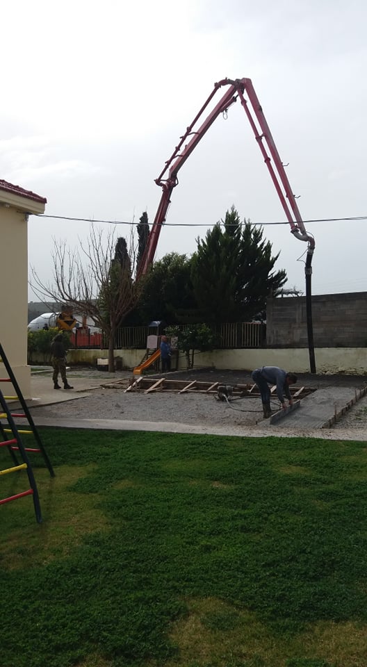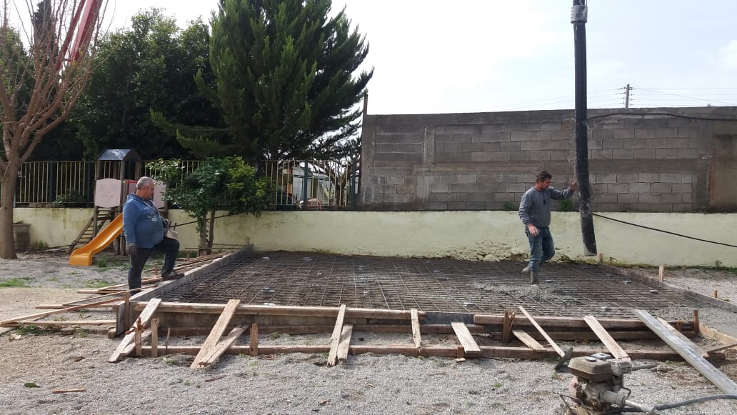 Ο εργολάβος Χατζάκης Γιάννης και ο γιος του Γιώργος, ανέλαβαν και ολοκλήρωσαν αφιλοκερδώς τις εργασίες για τη βάση στήριξης, στην οποία θα στηθεί ο οικίσκος αναμονής για τους γονείς και κηδεμόνες των παιδιών που λαμβάνουν κάποια θεραπεία στο σύλλογό μας.