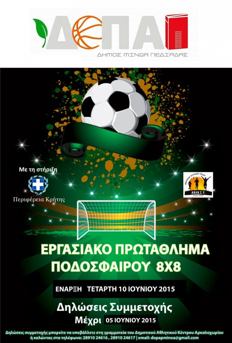 Με την στήριξη της Περιφέρειας Κρήτης θα πραγματοποιηθεί για άλλη μια χρονιά το Εργασιακό Πρωτάθλημα Ποδοσφαίρου του Δήμου Μινώα Πεδιάδος με έναρξη στις 10 Ιουνίου.