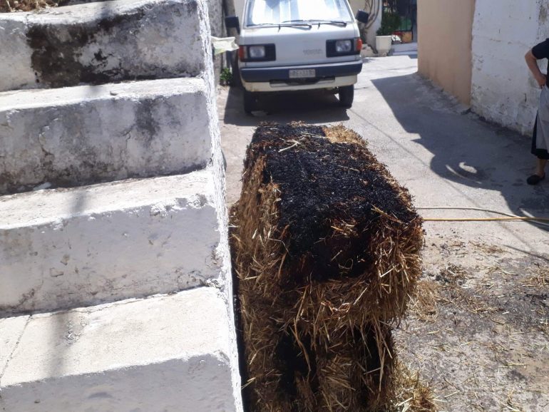 Παραλίγο να πληρώσει ακριβά, κάτοικος των Αγίων Δέκα του Δήμου Γόρτυνας, τις εργασίες που έκανε μέσα στην αποθήκη, όταν προσπάθησε να ηλεκτροκολλήσει και με τις σπίθες τα άχυρα πήραν φωτιά.