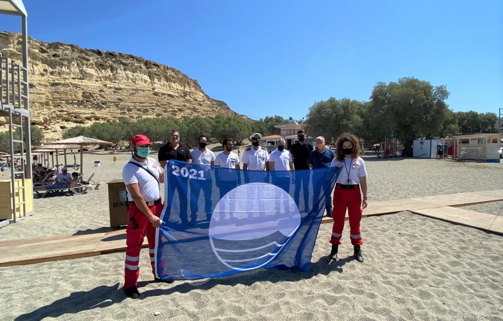 Σε δύο ειδικές τελετές, παρουσία του Δημάρχου Φαιστού Γρηγόρη Νικολιδάκη, πραγματοποιήθηκε η ανάρτηση των σημαιών για το 2021 στις παραλίες των Ματάλων και του Κόκκινου Πύργου