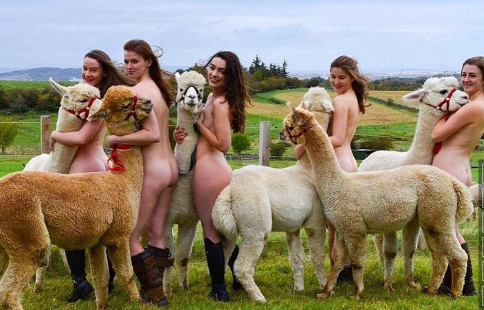 Ειδικά τα αλπακά αποδείχθηκαν… πρόκληση, αφού είχαν περισσότερη όρεξη να παίξουν με τις γυμνές καλλονές στο χορτάρι παρά να ποζάρουν υπομονετικά δίπλα τους.
