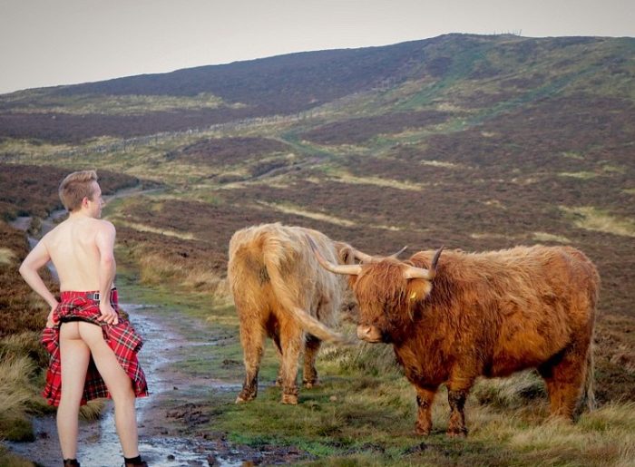 Αψηφώντας τον παγωμένο αέρα των σκωτσέζικων βουνών, δεν δίστασαν να ποζάρουν επί ώρες χωρίς κανένα ρούχο πάνω τους να πετύχουν την ιδανική πόζα. Οι δυσκολίες του πρότζεκτ πολλές, αφού εκτός από την δική τους συνεργασία ο φωτογράφος έπρεπε να εξασφαλίσει και εκείνη των τετράποδων μοντέλων, που δεν ήταν και τόσο υπάκουα στις οδηγίες του.