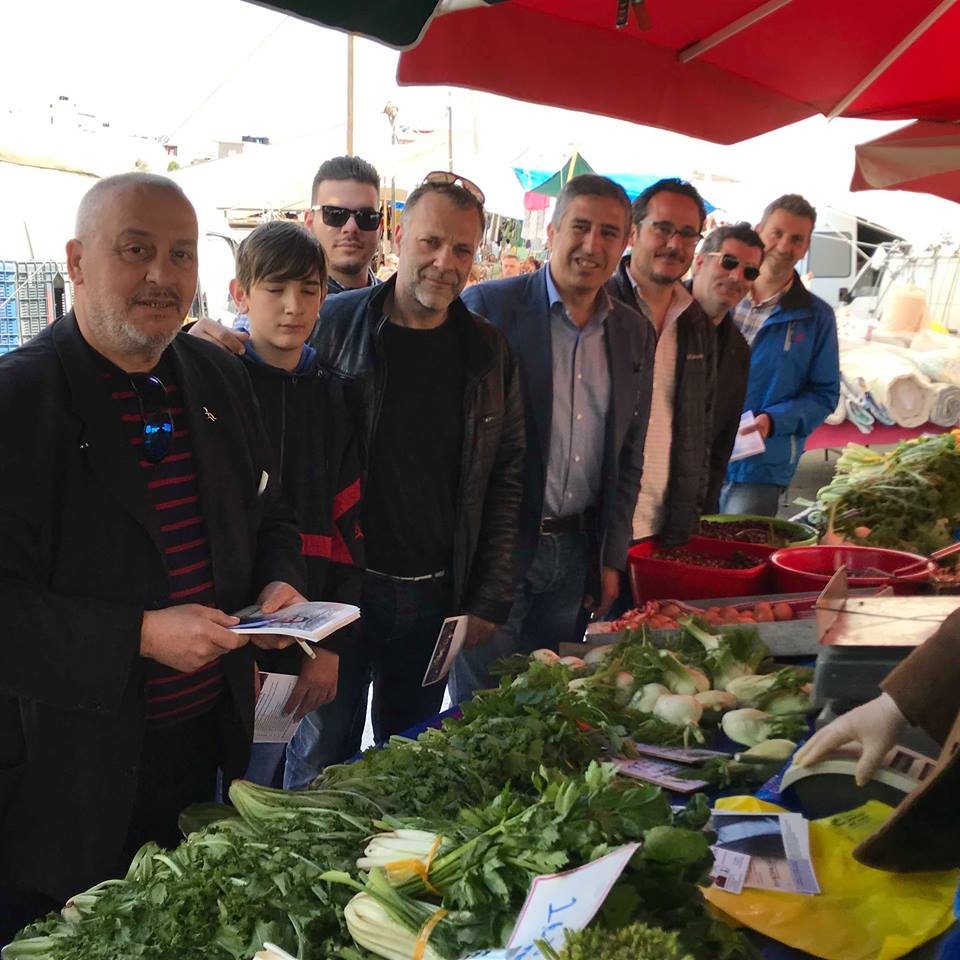Συνοδευόμενος από υποψήφιους δημοτικούς συμβούλους και φίλους των παρατάξεων “Συν+Πράξη Δημοτών” και “Άμεση Δημοκρατία”, συνομίλησε με παραγωγούς αγροτικών προϊόντων και εμπόρους επαναλαμβάνοντας ότι “δε θυμόμαστε τις λαϊκές αγορές επιλεκτικά και προεκλογικά. Κάνουμε τις αγορές μας από εδώ, αρκετοί από εμάς μεγαλώσαμε σε οικογένειες των οποίων το εισόδημα προερχόταν από τη λαϊκή αγορά. Γνωρίζουμε από κοντά τον καθημερινό μόχθο και αγώνα, τις δυσκολίες και τις απαιτήσεις της δουλειάς σας”.