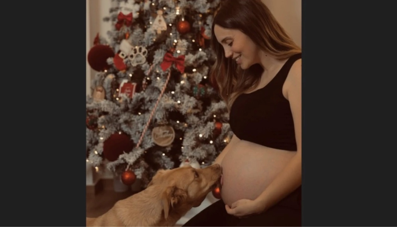 Η Άννα μοιράστηκε με τους διαδικτυακούς της φίλους νέες φωτογραφίες όπου φαίνεται η φουσκωμένη της κοιλίτσα, ποζάροντας δίπλα στο χριστουγεννιάτικο δέντρο. Σε μία από τις λήψεις πρωταγωνιστεί και ο αγαπημένος της σκύλος, ο οποίος μοιάζει να τη «φιλάει» στην κοιλίτσα, ενώ σε άλλη φαίνεται ένα στολίδι που γράφει: «Τα πρώτα Χριστούγεννα στην κοιλιά της μαμάς και στην καρδιά του μπαμπά».