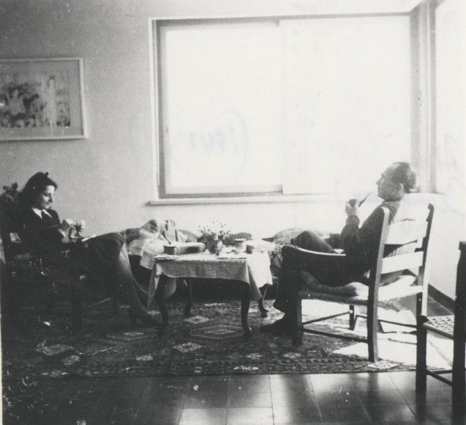 Ο Καζαντζάκης το 1940 είχε φύγει μαζί με την «Ελένη του» για το πέτρινο σπίτι στην Αίγινα. «Όταν εισέβαλαν οι Γερμανοί στην Αθήνα ο Καζαντζάκης και η Ελένη ήξεραν ότι θα έρθουν άγριες εποχές. Είχαν κρατήσει λάδι κι όταν τα παιδιά τους χτυπούσαν την πόρτα ο Καζαντζάκης τους έχωνε από μία κουταλιά στο στόμα. Όπως έκανε ο «Καπετάν Μιχάλης» ή όπως στις «Αδερφοφάδες» που ο Καζαντζάκης μιλάει για τα αποσκελετωμένα παιδιά που έτρωγαν χώμα», αφηγείται η κα Σταύρου.