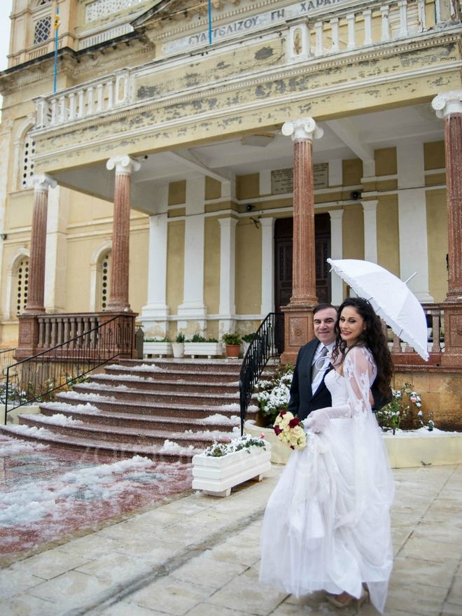 «Ήταν πραγματικά πολύ ιδιαίτερα. Νιώθουμε πολύ τυχεροί» λέει η Γεωργία. Όπως μας εξομολογείται… δύο ημέρες πριν τον γάμο και ακούγοντας τις προβλέψεις των μετεωρολόγων αποφάσισε να προμηθευτεί την ομπρέλα, χωρίς βέβαια να μπορεί να φανταστεί ότι θα χιόνιζε ακόμα και μέσα στη Χαλέπα!