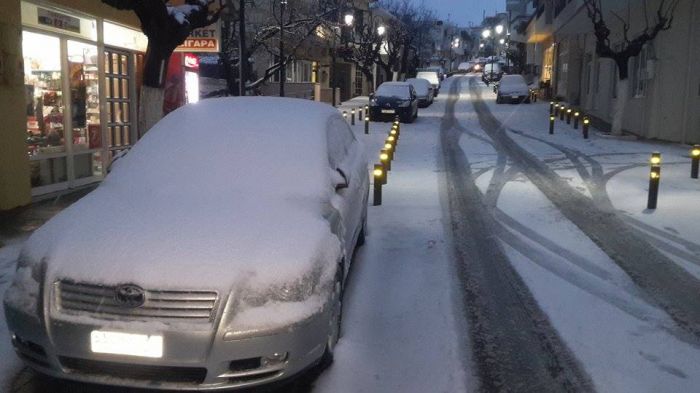 Περίπου στους 10 πόντους είναι το ύψος του χιονιού εντός του χωριού με τη χιονόπτωση να συνεχίζεται αλλά με μικρή ένταση.