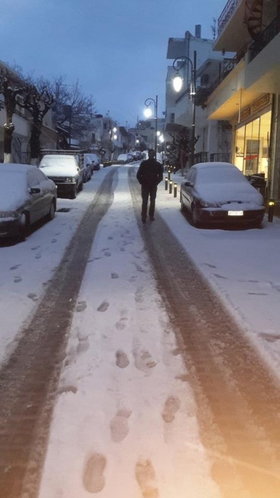 Ο χιονιάς επέστρεψε στα Ανώγεια όπου το ”έστρωσε” χωρίς πάντως να θυμίζει κάτι από την ένταση που είχε στις αρχές Ιανουαρίου.