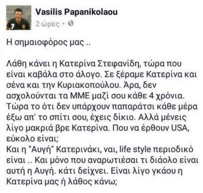 Ο Βασίλης Παπανικολάου σε σχόλιο του στον προσωπικό του λογαριασμό στο facebook αναρωτηθηκε, μεταξύ άλλων, αν η 26χρονη άλτρια είναι “γκάου”.