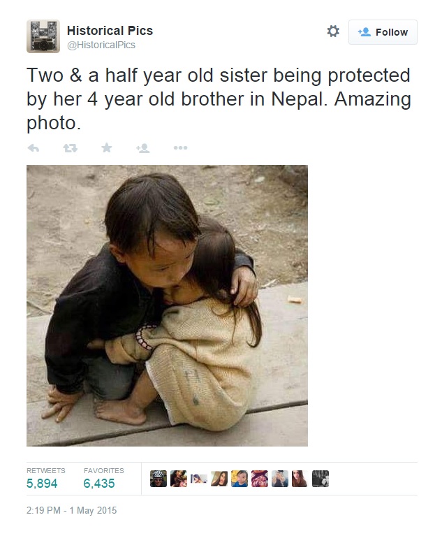 Mια συγκλονιστική φωτογραφία κάνει το γύρο του διαδικτύου, από τον φονικό σεισμό του Νεπάλ, ο οποίος σημειώθηκε πριν από μία εβδομάδα και μέχρι στιγμής μετρά περισσότερους από 6.000 νεκρούς.