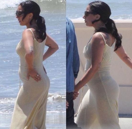 Αποκορύφωμα; Η φώτο που δημοσιεύτηκε από χρήστη του Twitter, και απεικονίζει την Lady Gaga χωρίς το καφτάνι της, να φορά ένα εφαρμοστό μπεζ φόρεμα, με την κοιλίτσα της εμφανώς φουσκωμένη.