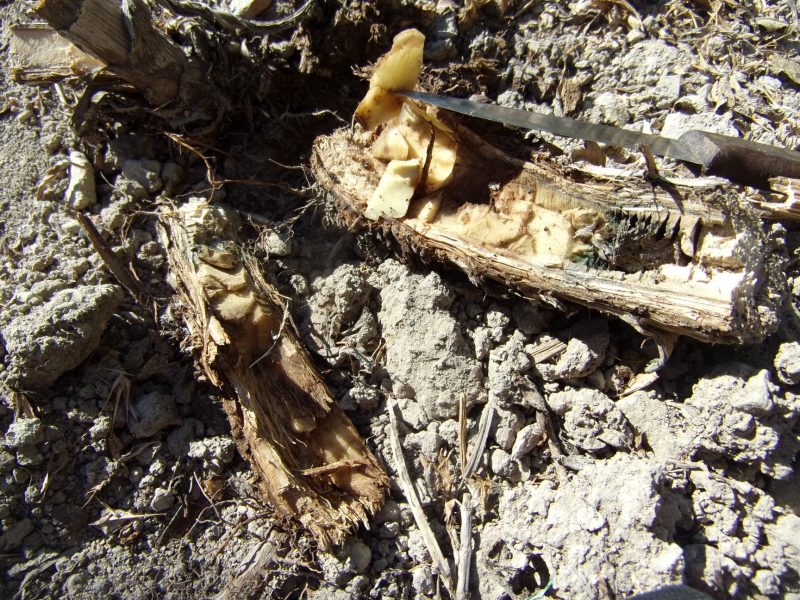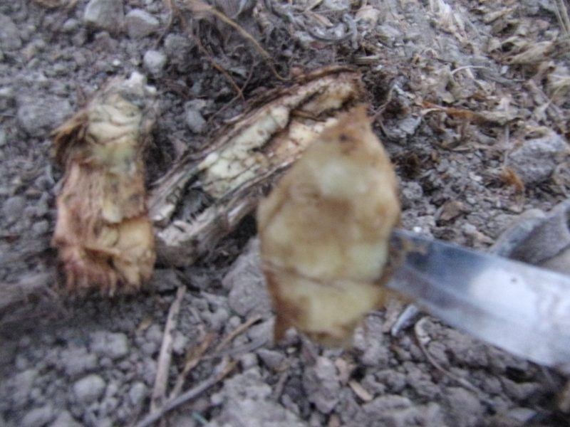 Τη ρίζα αυτή, κατ΄αρχάς τη χώριζαν στα δυο, με το σκαλιστήρι ή το μαχαιράκι! Μέσα της η ρίζα έχει ένα άσπρο καρδούλι σαν πατάτα ακριβώς. Καθάριζαν καλά – καλά απέξω το σκληρό περίβλημα, και ξεχώριζαν το άσπρο αυτόκαρδούλι, γιατί ήταν ιδιαίτερα νόστιμο!
