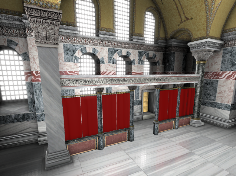 Η Αγία Σοφία είναι η μητρόπολη της αυτοκρατορίας. Εδώ θα λειτουργεί ο πατριάρχης, εδώ θα γίνεται η στέψη των αυτοκρατόρων, εδώ θα εκκλησιάζεται ο «ελέω Θεού» στις μεγάλες γιορτές. Δεν θα μπορούσε, λοιπόν, να λείπει από το κέντρο του ναού περίλαμπρος αυτοκρατορικός θρόνος, ντυμένος με πολύτιμους λίθους, ούτε βέβαια και μητατόριο, χώρος όπου ο αυτοκράτορας θα μπορεί να αλλάζει ρούχα.