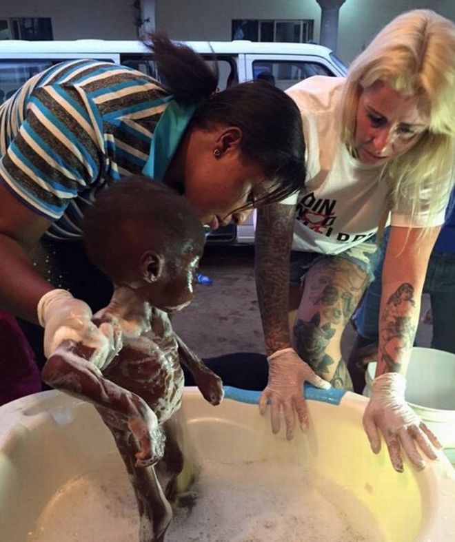 Στην εν λόγω φωτογραφία η γυναίκα φροντίζει ένα δίχρονο αγοράκι το οποίο περιπλανιόταν επί 8 μήνες στους δρόμους της Νιγηρίας καθώς οι γονείς του το πέταξαν έξω από το σπίτι γιατί νόμιζαν ότι είναι ΄”μάγος”!