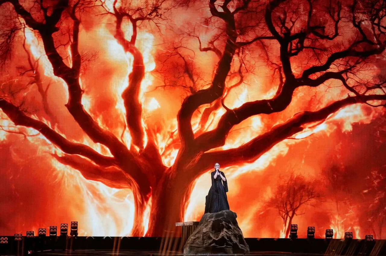 Το τραγούδι αποτυπώθηκε σκηνικά σαν μια μικρή τελετουργία: σε μια προβλήτα, πάνω σε έναν βράχο, κάτω από έναν ψηφιακό ουρανό, με φόντο ένα φλεγόμενο “Δέντρο της Ζωής”. Ένα σύμβολο που συνδυάζει την καταστροφή με τη γέννηση, αφήνοντας μια έντονη αίσθηση στους θεατές και κατοχυρώνοντας τη θέση της Κλαυδίας σε αυτήν τη μοναδική μουσική βραδιά.