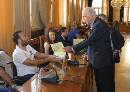 Με αυτή την δήλωση, ο Δήμαρχος Ηρακλείου κ. Βασιλής Λαμπρινός, ο οποίος υποδέχτηκε το πρωί του Σαββάτου 22 Οκτωβρίου στην αίθουσα του Δημοτικού Συμβουλίου στην Λότζια τους αθλητές και τις αθλήτριες της Ελληνικής Παραολυμπιακής Ομάδας που διακρίθηκαν στους πρόσφατους Παραολυμπιακούς Αγώνες, τόνισε την σημασία που δίνει η δημοτική αρχή στην βελτίωση της καθημερινότητας των συνδημοτών μας με κινητικά προβλήματα.