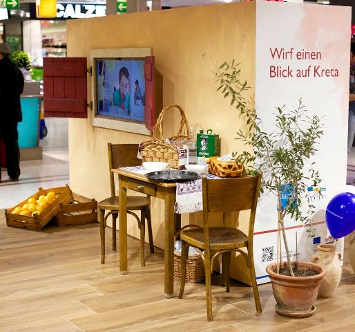 Στο μεγαλύτερο εμπορικό κέντρο, στην «καρδιά» της Βαυαρικής πρωτεύουσας, τοποθετήθηκε μέρος ενός παραδοσιακού Κρητικού σπιτιού, στο οποίο προσφέρθηκαν απλόχερα Κρητική ζεστασιά και φιλοξενία στους εκατοντάδες επισκέπτες του πολυκαταστήματος με ξενάγηση στον πολιτισμό του νησιού μας με κέρασμα ρακής-παραδοσιακών εδεσμάτων αλλά και πολλές εκπλήξεις σε όλους που επιθυμούσαν να μάθουν περισσότερα για το όμορφο Ελληνικό νησί.