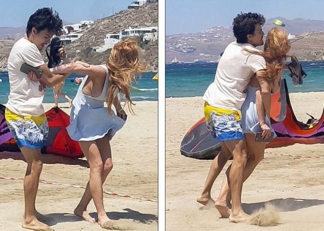 Οι φωτογραφίες από τη Μύκονο δείχνουν το διάσημο ζευγάρι, να μαλώνει σε τζιπ, πριν η Λόχαν πετάξει στην παραλία το κινητό του συντρόφου της.