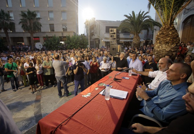 Στην Πλατεία του Αγίου Τίτου στο Ηράκλειο εμφανίστηκε σήμερα ο υπουργός Οικονομικών Γιάνης Βαρουφάκης. Κατά την διάρκεια της ομιλίας του, ο υπουργός παρουσίασε την δική του εκδοχή για τις πολιτικές εξελίξεις.