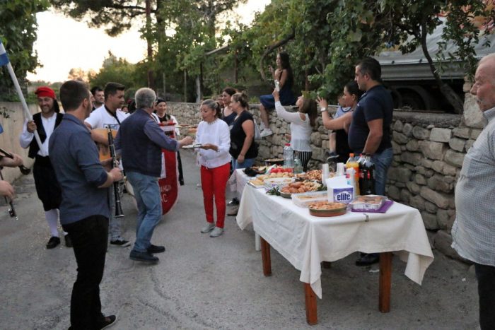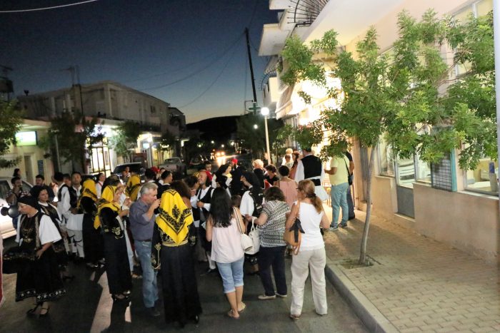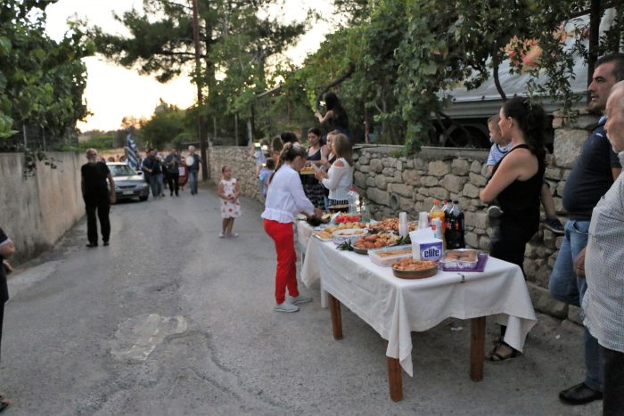 Στη συνέχεια όλοι συγκεντρώθηκαν στην αυλή του Γυμνάσιου – Λύκειου Αγίων Δέκα όπου ο Πολιτιστικός Σύλλογος Αγίων Δέκα, είχε έτοιμο τον χώρο για φιλοξενήσει όλους τους καλεσμένους φροντίζοντας όλοι τους να μείνουν ευχαριστημένοι.
