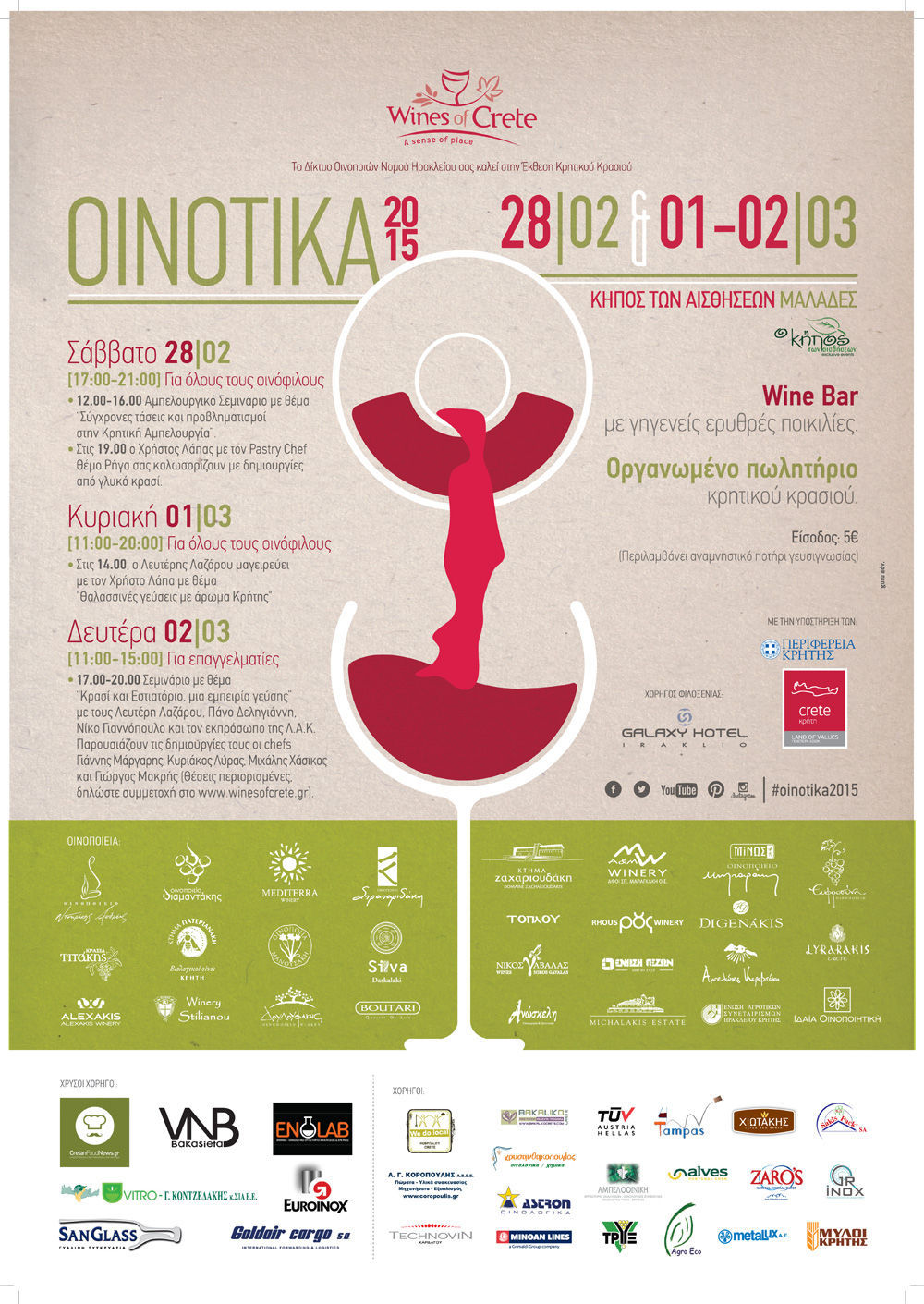 Για έβδομη συνεχή χρονιά, οι Οινοποιοί της Κρήτης ετοιμάζονται να καλωσορίσουν τους φίλους του Κρητικού αμπελώνα στην Παγκρήτια Έκθεση «OINOTIKA 2015» που θα πραγματοποιηθεί από 28 Φεβρουαρίου έως 2 Μαρτίου στον χώρο εκδηλώσεων, «Κήπος των Αισθήσεων» στις Μαλάδες Ηρακλείου.