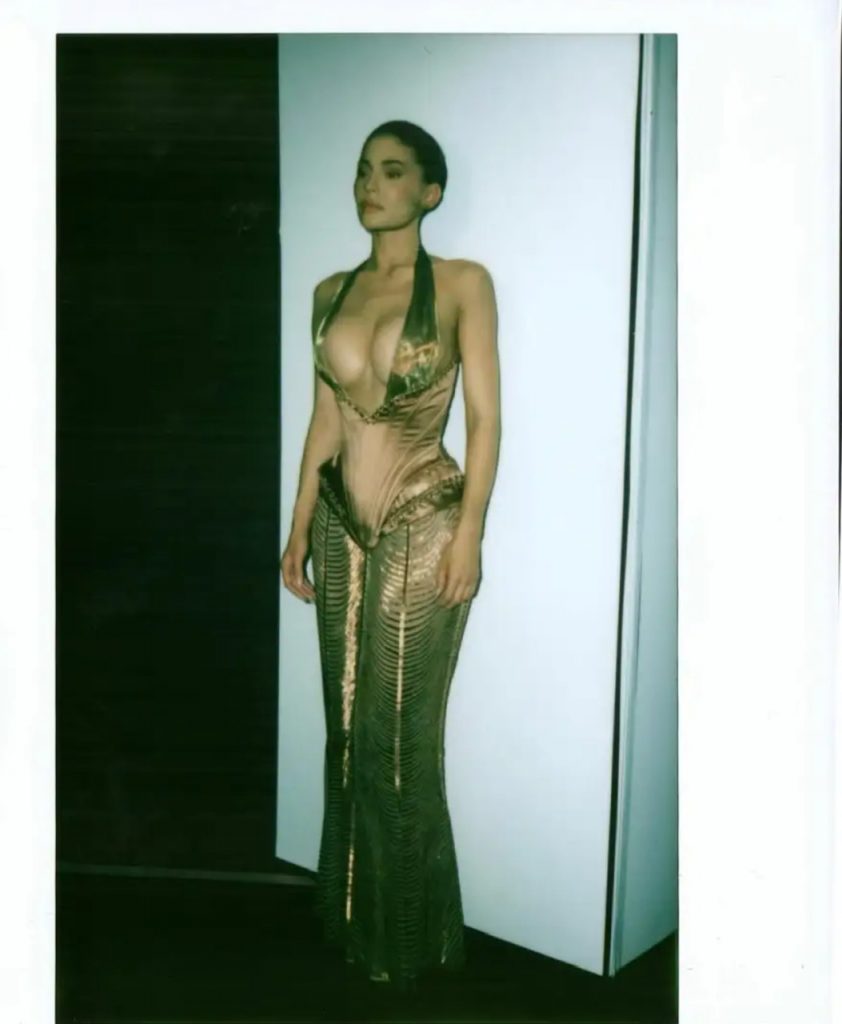 Αφορμή η selfie και τα καρέ της 27χρονης πριν την εμφάνιση της στο ντεφιλέ του Ζαν Πολ Γκοτιέ στην εβδομάδα μόδας στο Παρίσι, με το ντεκολτέ της να ξεχωρίζει.