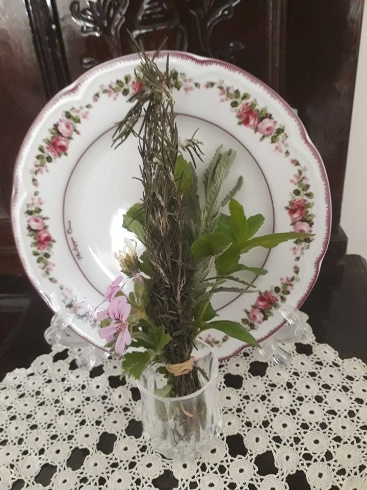 Σε κάθε ματσάκι έβαζαν και από ένα κλαρί πρασινάδα, δηλαδή βασιλικό, αρισμαρί ή δάφνη, και μετά τα έδεναν με σπάγκο, και η ροδαριά ήταν έτοιμη!