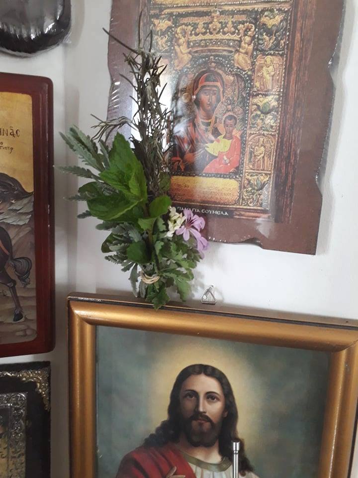 Τα λουλούδια αυτά στο χωριό μας, τα πήγαιναν από βραδύς στο σπίτι του παπά, που στη Γαλιά τότε ήταν ο παπά Γιώργης, και τα άφηναν πάνω σε ένα μεγάλο τετράγωνο τραπέζι, που είχε στο ευρύχωρο σαλόνι του.