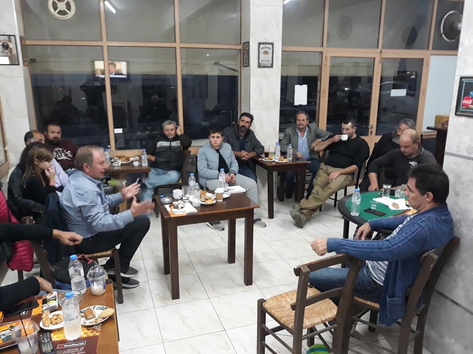 Ο κ. Κατσιαμπής είχε ενδιαφέρων και εποικοδομητικό διάλογο με τους μελισσοκόμους που παραβρέθηκαν στη συνάντηση που έγινε ύστερα απο πρωτοβουλία του εμπόρου ζωοτροφών κ. Τσικριτσάκη Νικολάου.