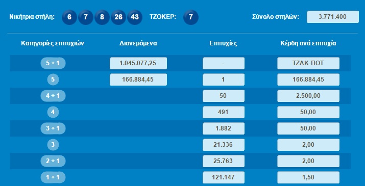 Όπως προκύπτει από την σημερινή κλήρωση του τζόκερ, δεν υπάρχει μεγάλος τυχερός