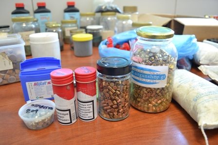 Βρέθηκαν μεταξύ άλλων και κατασχέθηκαν, 2 μηχανές αναγόμωσης φυσιγγίων, 329 φυσίγγια, 326 κάλυκες και ποσότητα πυρίτιδας