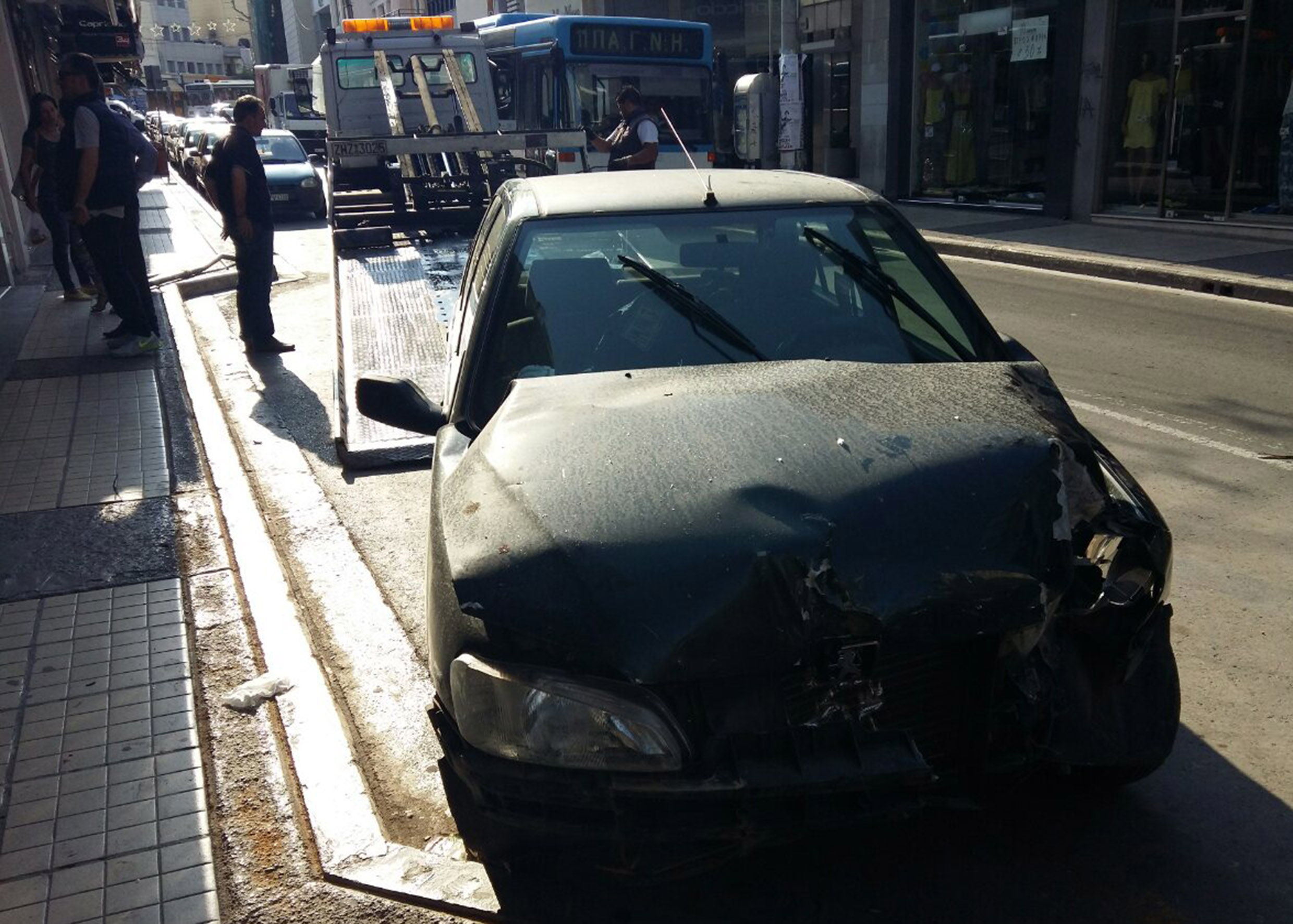 Το αυτοκίνητο μπήκε μέσα σε βιτρίνα καταστήματος λίγο πριν τις 6 το πρωί,στην λεωφόρο Καλοκαιρινού αφού πρώτα έριξε ειδική σήμανση που υπήρχε στο σημείο για τη στάθμευση ΑμεΑ.