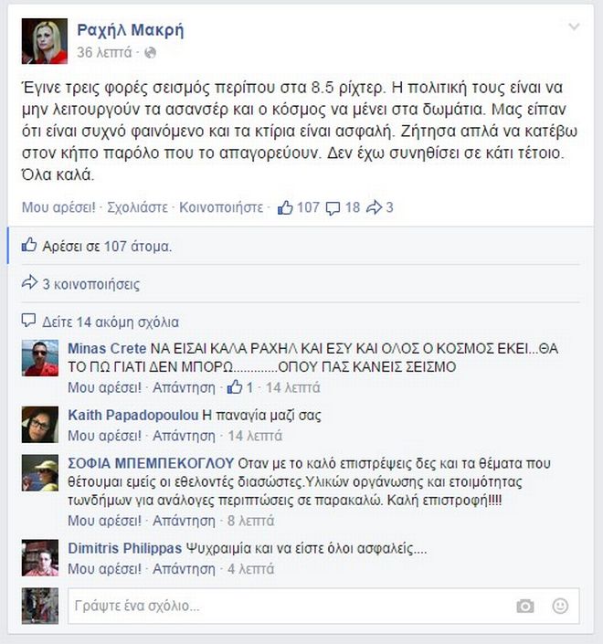 Στην Ιαπωνία βρίσκεται αυτές τις ημέρες και η βουλευτής του ΣΥΡΙΖΑ, Ραχήλ Μακρή, η οποία και δήλωσε πως δεν έχει φυσικά βιώσει ξανά κάτι παρόμοιο. Η κα. Μακρή ανήρτησε πριν από λίγο το παρακάτω στο λογαριασμό της στο facebook: