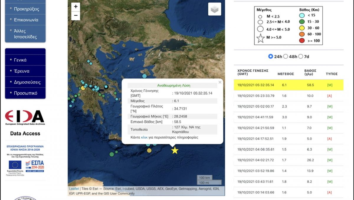 Νέος ισχυρός σεισμός, αισθητός και στην Κρήτη σημειώθηκε πριν από λίγο