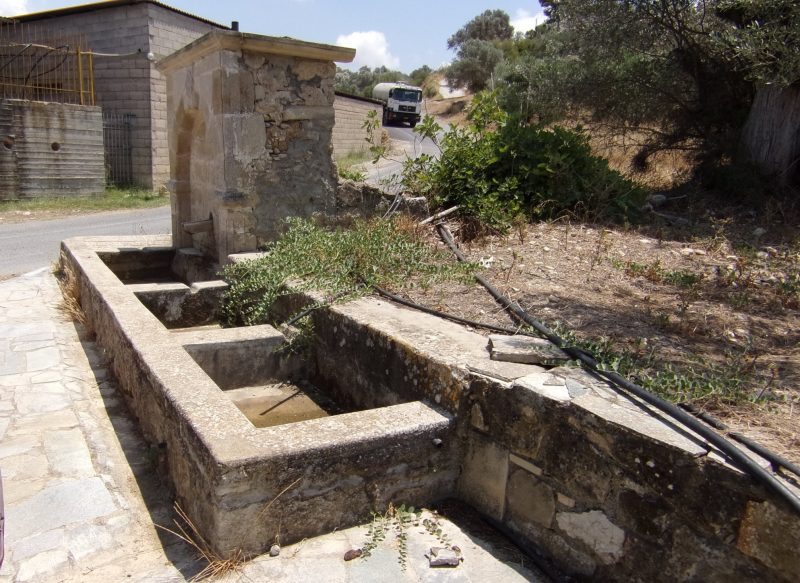 Το χωριό είχε και τις δικές του πηγές, όπως στα νότια εκείνη «στου Γαβαλά» που ήταν μια σπηλιά με περιβάλλον στέπας της Αφρικής! Εκεί έσταζε παγωμένο νερό από τα πέτρινα ψηλά τοιχώματα της σπηλιάς, και συγκεντρώνονταν σε μια μεγάλη πέτρινη γούρνα, και από εκεί γέμιζε τα σταμνιά του ο κόσμος το καλοκαίρι για να δροσιστεί ! Λίγο πιο νότια υπήρχε το «καβούσι της μερθιάς» που ήταν σε ένα ρέμα, και τη πηγή σκέπαζαν τεράστιες μερθιές! Ήταν η «Τούρκικη κρήνη» με τις πολλές γούρνες και δίπλα σε μια μεγάλη μουριά υπήρχε τούρκικο νεκροταφείο επί τουρκοκρατίας. Είχε επίσης η Φανερωμένη κι άλλες πηγές, ανατολικά στο Λιβάδι και στις Πλακούρες, και βόρεια μία άλλη στου Ποταμίτη,Είχε και άλλες που δεν τις θυμάμαι.