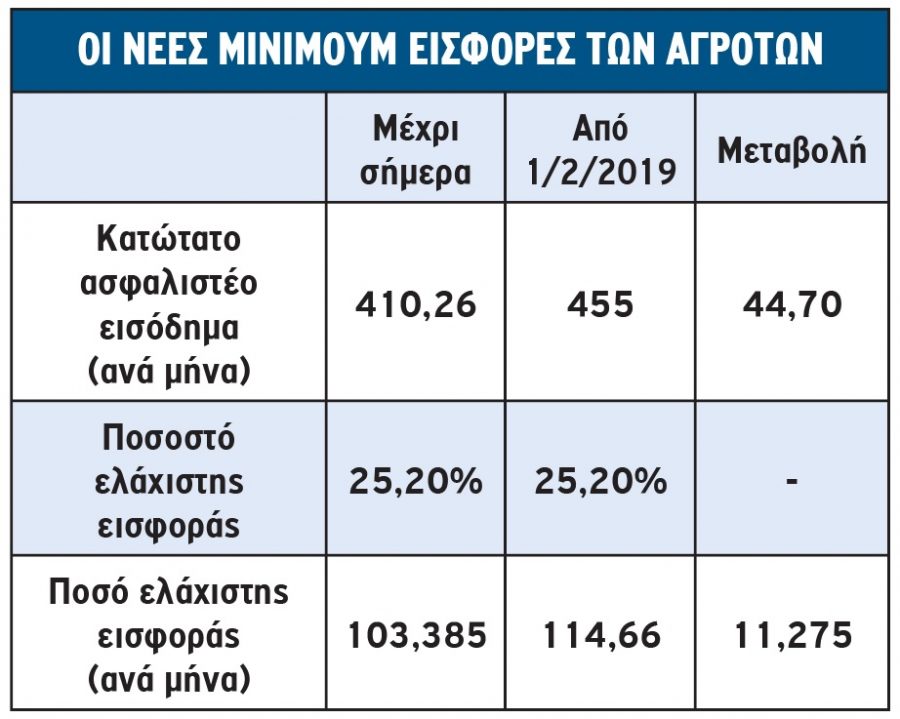 Όπως προκύπτει από τα παραπάνω, λοιπόν, σε σύγκριση με το 2018, η κατώτατη ασφαλιστική εισφορά για τους αγρότες θα είναι για φέτος αυξημένη κατά 11,275 ευρώ τον μήνα ή 124,025 ευρώ σε ετήσια βάση (για 11 μήνες).