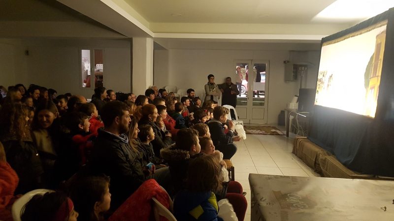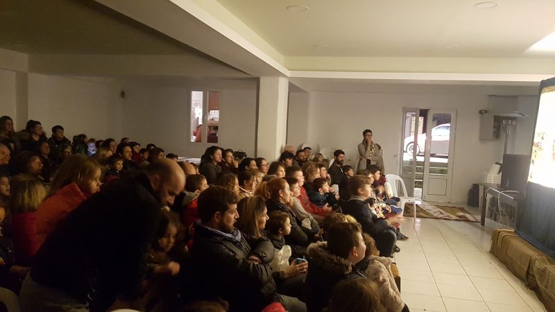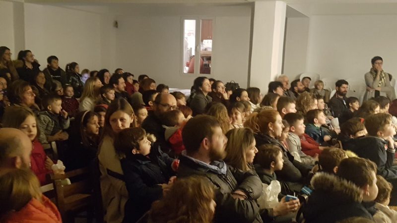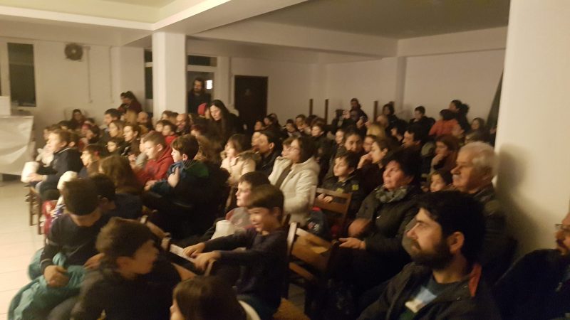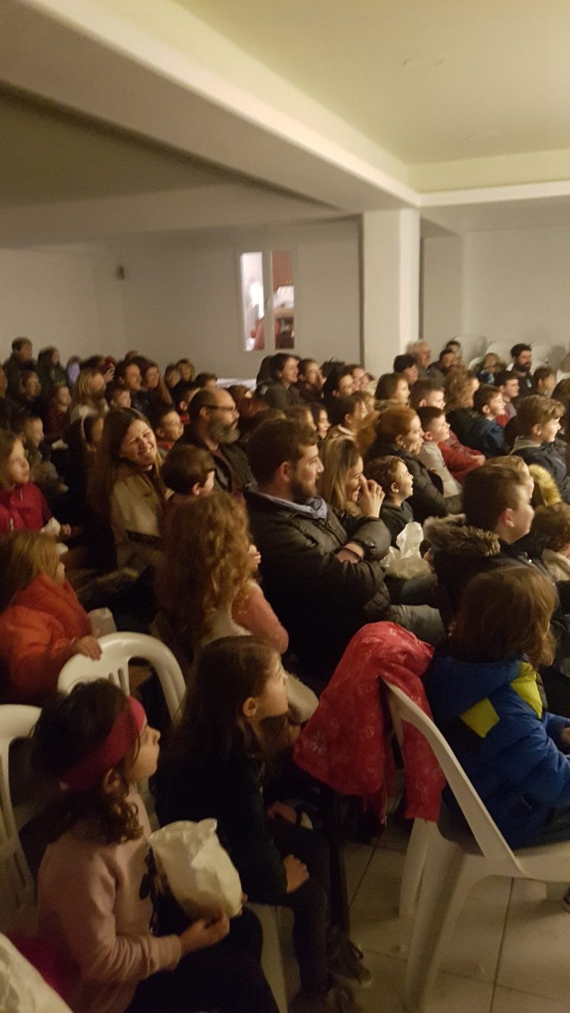 Σε μια κατάμεστη αίθουσα ο Πολιτιστικός Σύλλογος Πόμπιας παρουσίασε την παράσταση του καραγκιόζη.